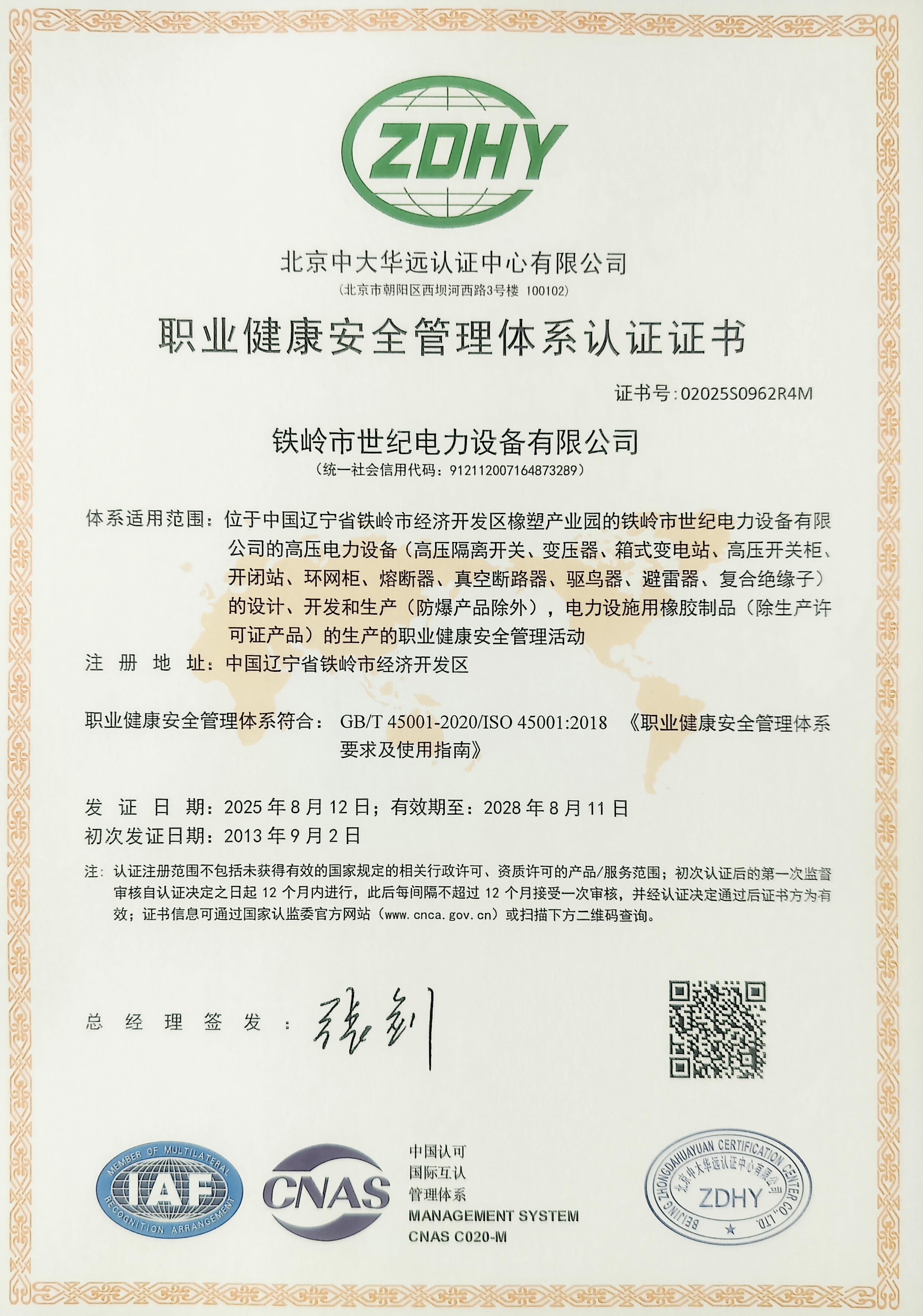 鐵嶺市世紀電力設備有限公司是集科研開發(fā)、生產(chǎn)制造、用戶服務于一體的國家高新技術企業(yè),始建于1999年,位于鐵嶺經(jīng)濟開發(fā)區(qū),占地面積5萬余平方米,建筑面積2萬余平方米。主要從事國家電網(wǎng)配套戶外高低壓隔離開關、電力電纜、變壓器成套裝置、高低壓開關柜、箱式變電站、絕緣子等產(chǎn)品的研發(fā)、生產(chǎn)和銷售。公司現(xiàn)有國家發(fā)明專利6項、實用新型專利9項,公司通過了ISO9001國際質(zhì)量管理體系認證、ISO14001環(huán)境管理體系認證和ISO 45001職業(yè)健康安全體系認證。